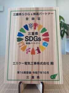 2025.12.01 三重県SDGs推進パートナーに登録されました この度、第16期「三重県SDGs推進パートナー」の登録を受けることができました。 今後もSDGsに関する取組みの継続はもとより、改善や新たな取組みを模索し 実行して行く所存です。